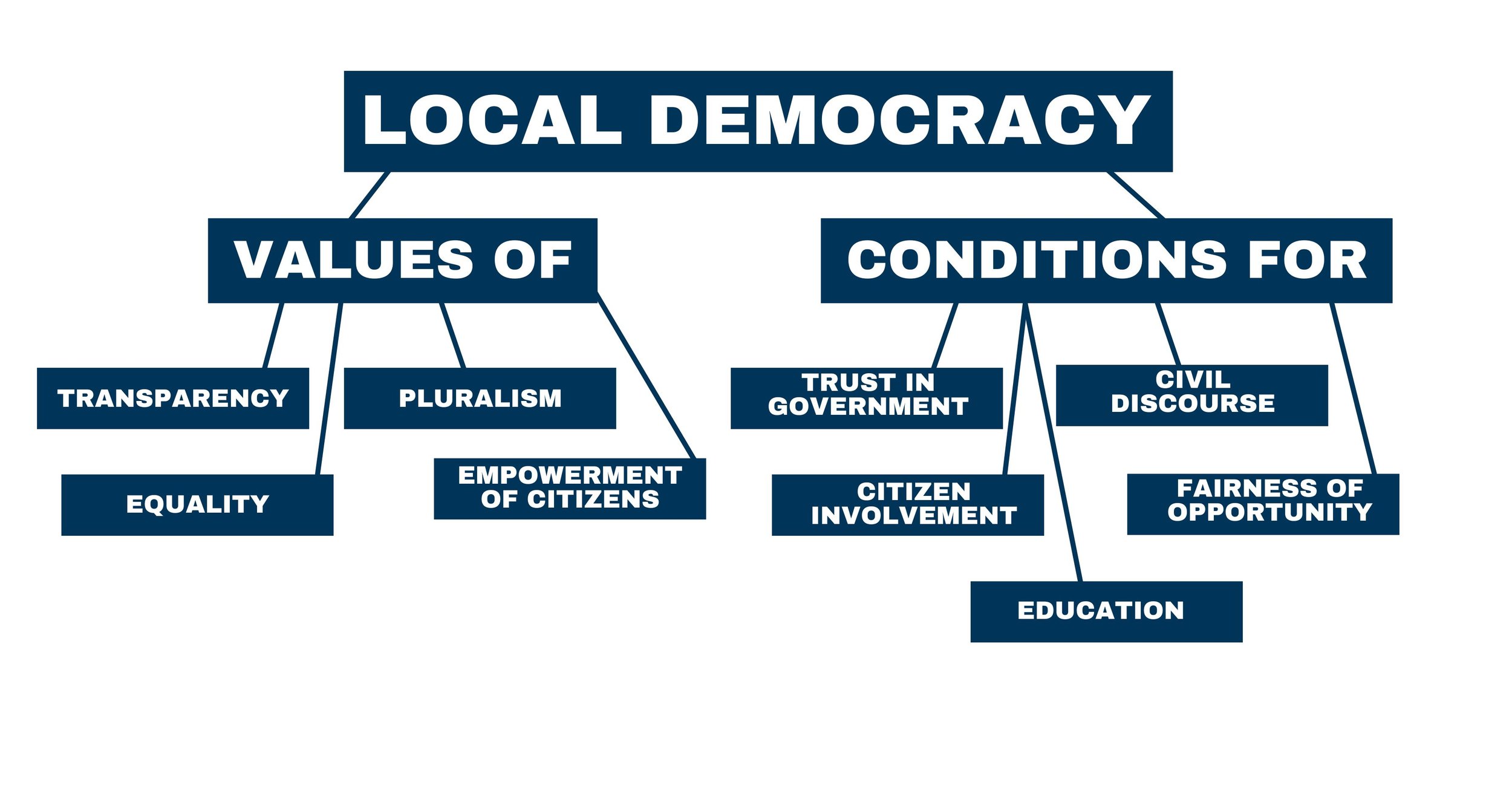 When we sat down to describe what democracy means on a local level and how we can support it right here in Cleveland Heights, we thought about what democracy looks like on a smaller scale and how we can impact its strength through our own expectations, involvement, and activism.